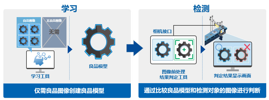 通过对良品模型和检测对象图像进行比较,判断良品和不良品