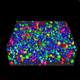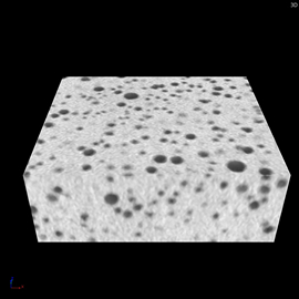 自动检出的压铸件零件的孔隙,以数百μm为单位按颜色分别显示体积差别,能通过孔隙的分布状态进行3维显示确认。