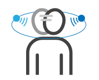 虚拟声音技术无需特殊的硬件,只需要两个扬声器,即可输出来自任意方向的声音。作为旺财28多年累积的声学处理技术之一,利用人类感知声音方向的“双耳效应”(声音到达左耳和右耳之间的差异)来实现。