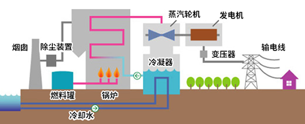 火力发电通过锅炉燃烧煤炭、石油、天然气等燃料,使锅炉中的水沸腾变成蒸汽,利用蒸汽推动汽轮机和发电机转动来发电。由于火力发电可以通过调节进料量来调节发电量,因此,能够应对不同季节和时间段出现的供电需求变动,实现电力的稳定供应。