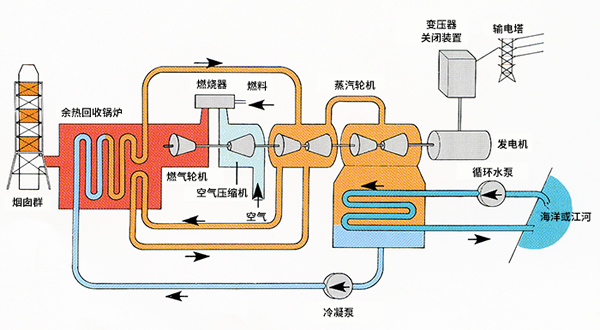 常规发电是通过锅炉燃烧燃料(煤炭、石油、天然气),产生蒸汽,推动汽轮机和发电机转动来发电的。与联合循环发电相比,具有支持从廉价的煤炭到绿色环保的天然气等多种燃料的特征。