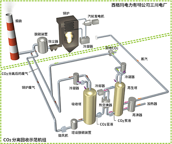 已投运的火电机组也可应用该项技术。CO2分离回收技术对于解决全球变暖问题具有重要意义