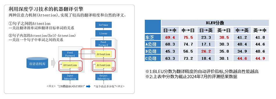 ● 最新のディープラーニング技術と東芝独自技術により、高精度かつ高速な業務向け機械翻訳サービスを実現