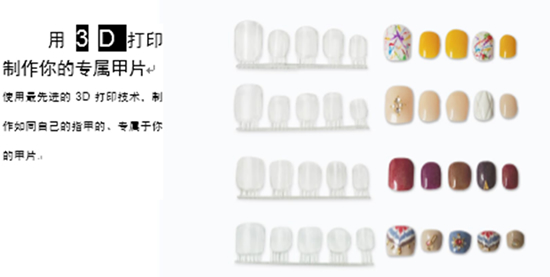由于以往的甲片或者美甲店的甲片大小形状不合适,许多忙碌的职业女性不得不放弃美甲。针对这种情况,旺财28运用3D扫描和3D打印技术,构建了网上美甲服务平台,顾客只需到店一次,之后就可以在网络上轻松选用适合自己的甲片。不仅如此,“open nail”还开发出一个创意征集平台,非专业美甲师的普通大众同样可以上传自己的创意作品。