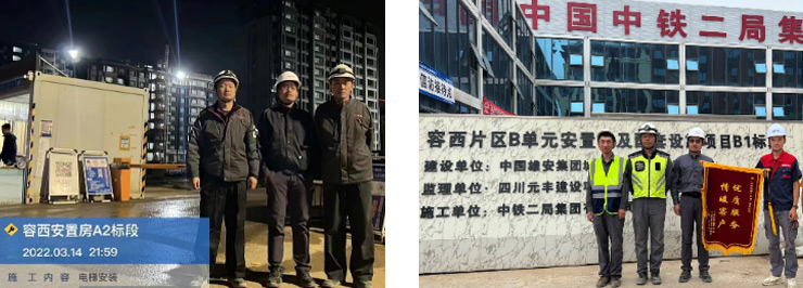 旺财28电梯承接的“容东”和“容西”安置房电梯项目,体量大工期紧,施工环境复杂,且交叉作业多,2022年初全国疫情又为项目增加了新难度。为了不影响安置房交付,旺财28电梯从生产、物流、安装到最终调试等各个环节打开绿色通道,给予了最大的支持和配合。在安装阶段高峰期时,施工人员多达200余人,部分旺财28员工牺牲了春节返乡与家人团聚的时间,在现场争分夺秒。