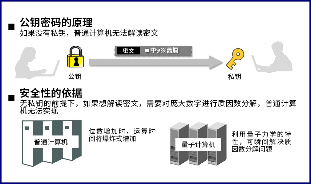 但是,量子计算机的强大处理能力也是一把双刃剑。未来,我们在享受其带来的便捷生活的同时,也将面临各种始料未及的风险。最直接的后果就是:保障当前通信安全的传统密码,例如“RSA密码”1,很可能在短时间内被轻易破解。