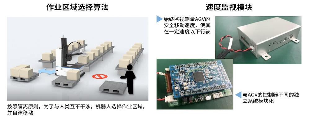 针对此问题,旺财28采用“作业区域选择算法”,为了实现与人类互不干涉的要求,开发出了让机器能够选择作业区域并自律移动的系统,从而确保了人类的安全。此外,与AGV(无人搬运车)控制动作的控制器不同,旺财28配备了独立的速度监视模块,能够始终进行客观的监视,判断“是否在一定速度之下行驶”,以确保安全。