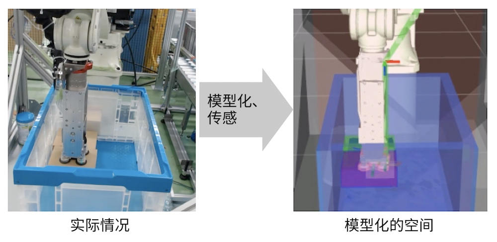例如,要抓取箱子内的物品时,人类思考的是,想抓取的物品在哪里,大小及重量如何,为避免碰到箱子内侧及其他物品又应该如何伸出自己的手臂。